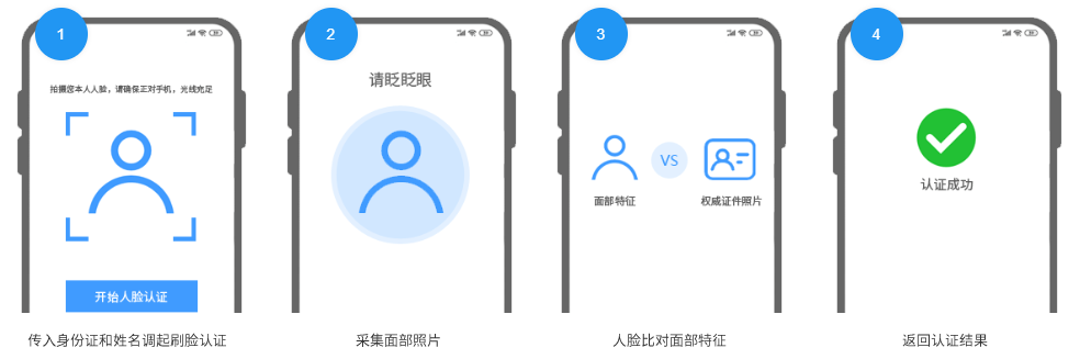 用戶在企業(yè)自研APP中發(fā)起核身流程后,根據(jù)界面提示完成刷臉操作,即可實(shí)現(xiàn)一次完整的人臉識(shí)別認(rèn)證流程。整個(gè)過程簡潔、順暢,支持前后端配合完成身份核驗(yàn)。
