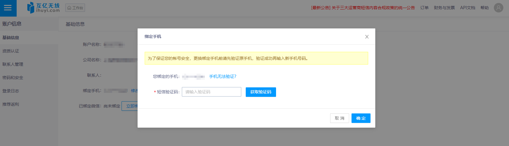點(diǎn)擊“綁定手機(jī)”旁的【修改】按鈕,彈出“綁定手機(jī)”彈窗 。