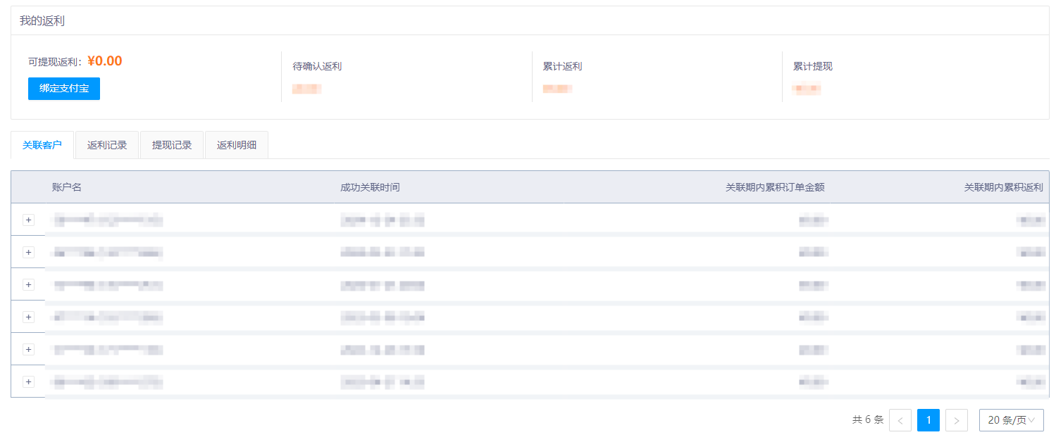 確保“可提現(xiàn)返利”>0,且已“綁定支付寶”(點(diǎn)擊“綁定支付寶”,按指引關(guān)聯(lián)收款賬戶 ),提交提現(xiàn)申請(qǐng),審核通過(guò)后返利將轉(zhuǎn)入綁定的支付寶賬戶 。