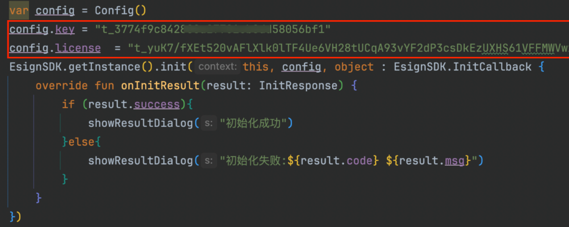 EsignSDK.getInstance().init(context: Activity, config: Config, callback: InitCallback)