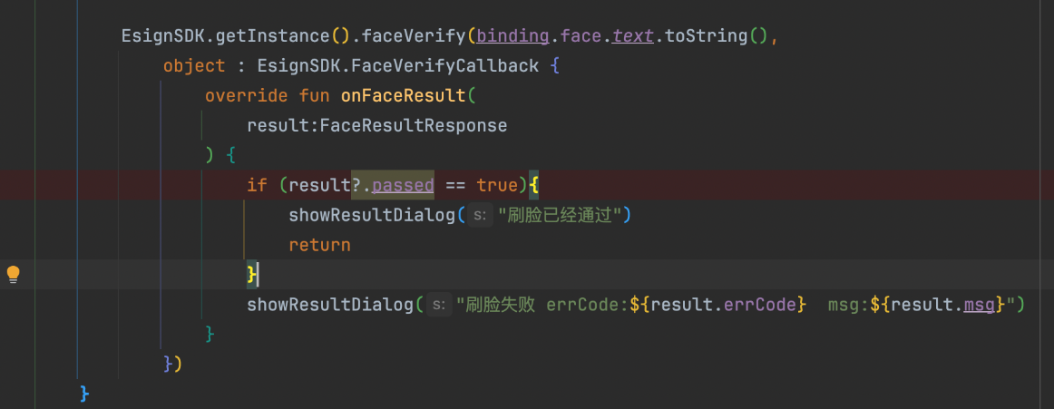 EsignSDK.getInstance().faceVerify(faceAuthCode: String, callback: FaceVerifyCallback)