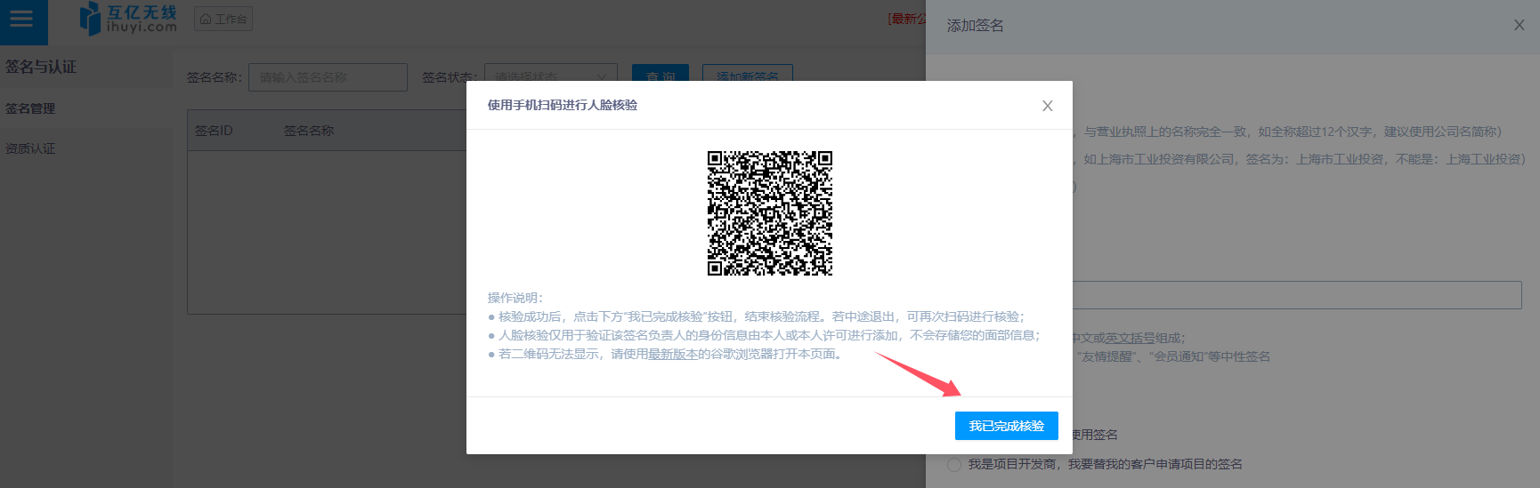注意:若中途退出,可再次掃碼進(jìn)行核驗(yàn);人臉核驗(yàn)僅用于驗(yàn)證該簽名負(fù)責(zé)人的身份信息由本人或本人許可進(jìn)行添加,不會(huì)存儲(chǔ)您的面部信息;若二維碼無法顯示,請(qǐng)使用最新版本的谷歌瀏覽器打開本頁(yè)面。
