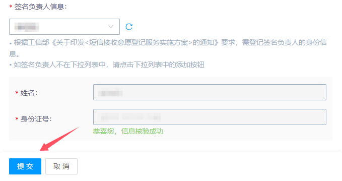 5、確認(rèn)短信簽名的信息無誤后,點(diǎn)擊【提交】按鈕。