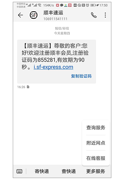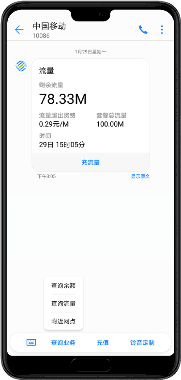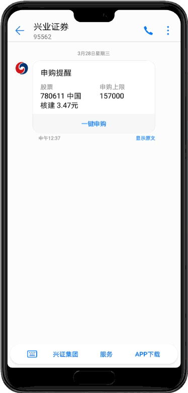 全面展示企業(yè)服務(wù)交互、業(yè)務(wù)辦理信息,點擊短信下方的菜單,便可跳轉(zhuǎn)H5鏈接或打開APP應(yīng)用