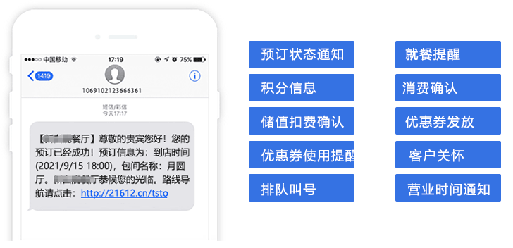 免費體驗預(yù)訂短信功能 餐廳預(yù)訂短信發(fā)送方案詳情 查看短信產(chǎn)品報價