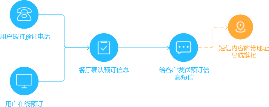 飯店可通過餐飲軟件或者互億無線短信平臺兩種方式發(fā)送包廂預(yù)訂短信。短信自帶地址導(dǎo)航功能,用戶點(diǎn)擊導(dǎo)航鏈接可調(diào)出導(dǎo)航地圖。