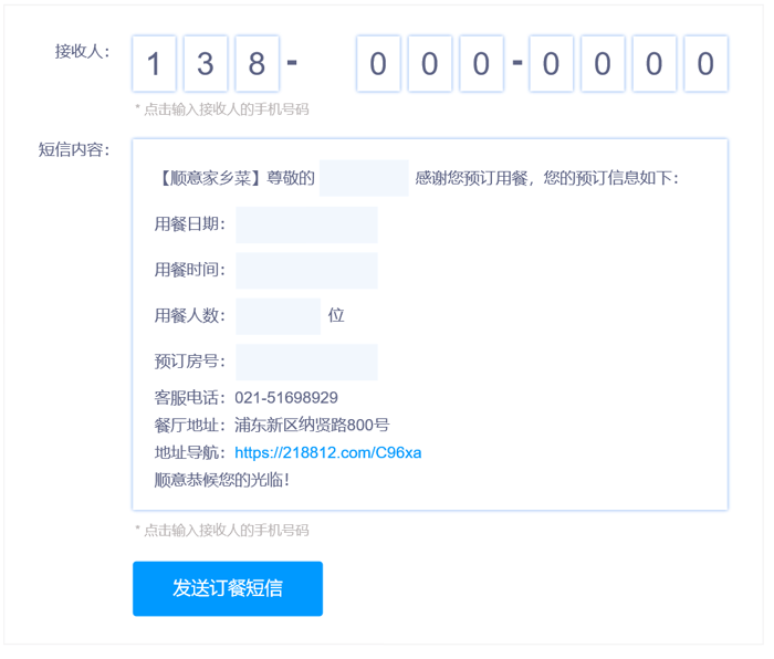 免費(fèi)體驗(yàn)預(yù)訂短信功能 餐廳預(yù)訂短信發(fā)送方案詳情 查看短信產(chǎn)品報(bào)價(jià)