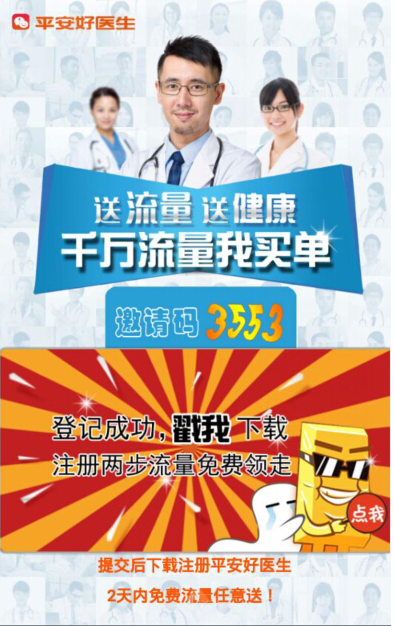 無獨有偶,平安好醫(yī)生推出“下載送30M流量”的活動,160掛號網(wǎng)開展“關注微信公眾號抽流量”等活動。都是通過獎勵手機流量包的形式,吸引潛在用戶群體主動參與商家的活動,例如下載APP送流量、注冊送流量、關注微信公眾號送流量、填寫問卷資料送流量、評價送流量等等多種,有效的提高平臺在各環(huán)節(jié)的轉化率及用戶活躍度。