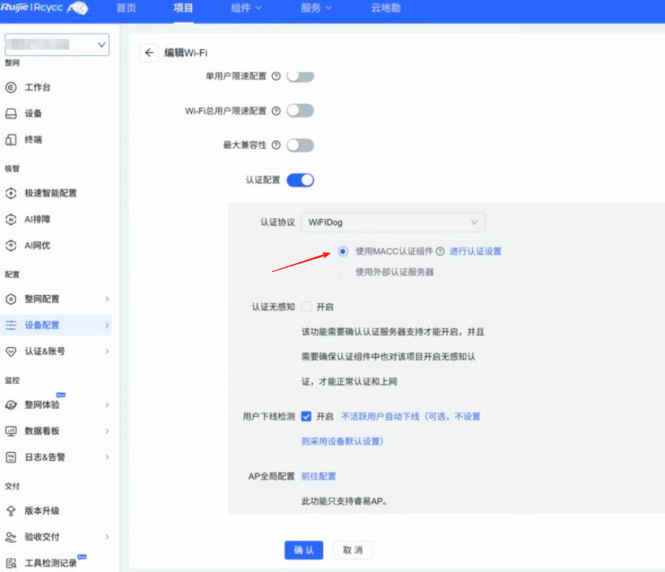 認(rèn)證服務(wù)器主頁(yè):maccauth.ruijie.com.cn