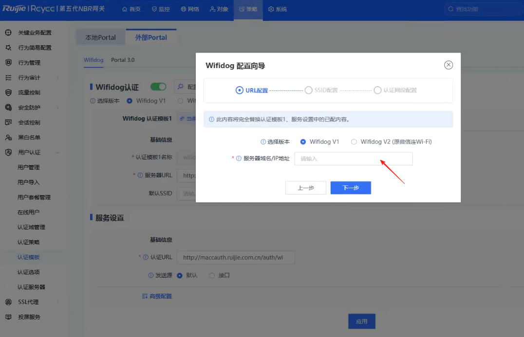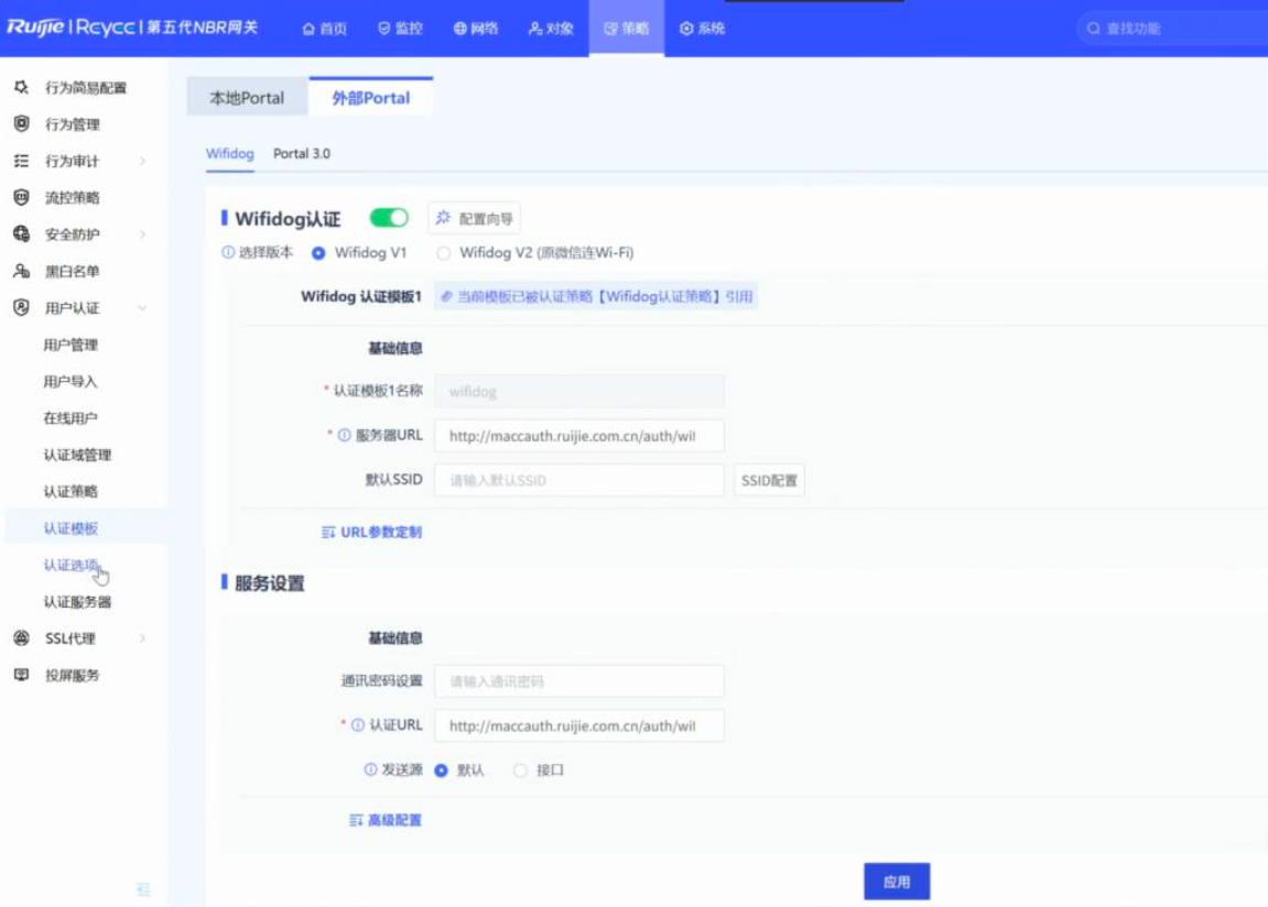 5、認(rèn)證模板名稱,選擇“wifidog”,然后保存。