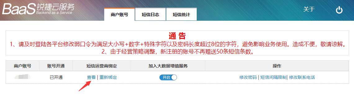 本文為針對(duì)銳捷MACC諾客云平臺(tái)設(shè)置互億無(wú)線短信發(fā)送的說(shuō)明。MACC諾客云需通過(guò)短信中間件(BaaS系統(tǒng))才能與短信網(wǎng)關(guān)對(duì)接,用戶需要先開(kāi)通BaaS系統(tǒng),并配置互億無(wú)線短信賬號(hào),并在MACC諾客云中綁定BaaS系統(tǒng)的賬號(hào)密碼,最后在設(shè)備的web管理平臺(tái)中開(kāi)啟上網(wǎng)認(rèn)證,即可完成短信發(fā)送配置。