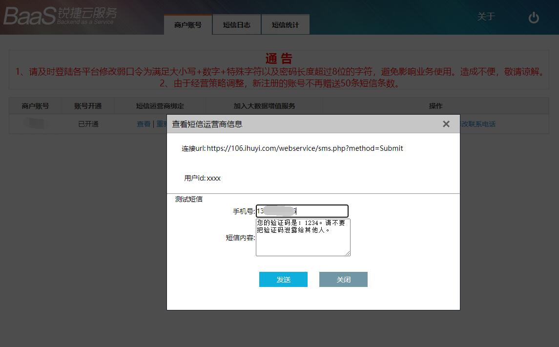 注:請(qǐng)先填寫(xiě)上述短信內(nèi)容進(jìn)行測(cè)試,調(diào)試成功后可以更換其他短信內(nèi)容,使用新短信內(nèi)容需在互億無(wú)線短信平臺(tái)進(jìn)行模板報(bào)備。