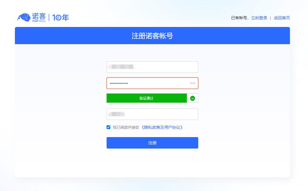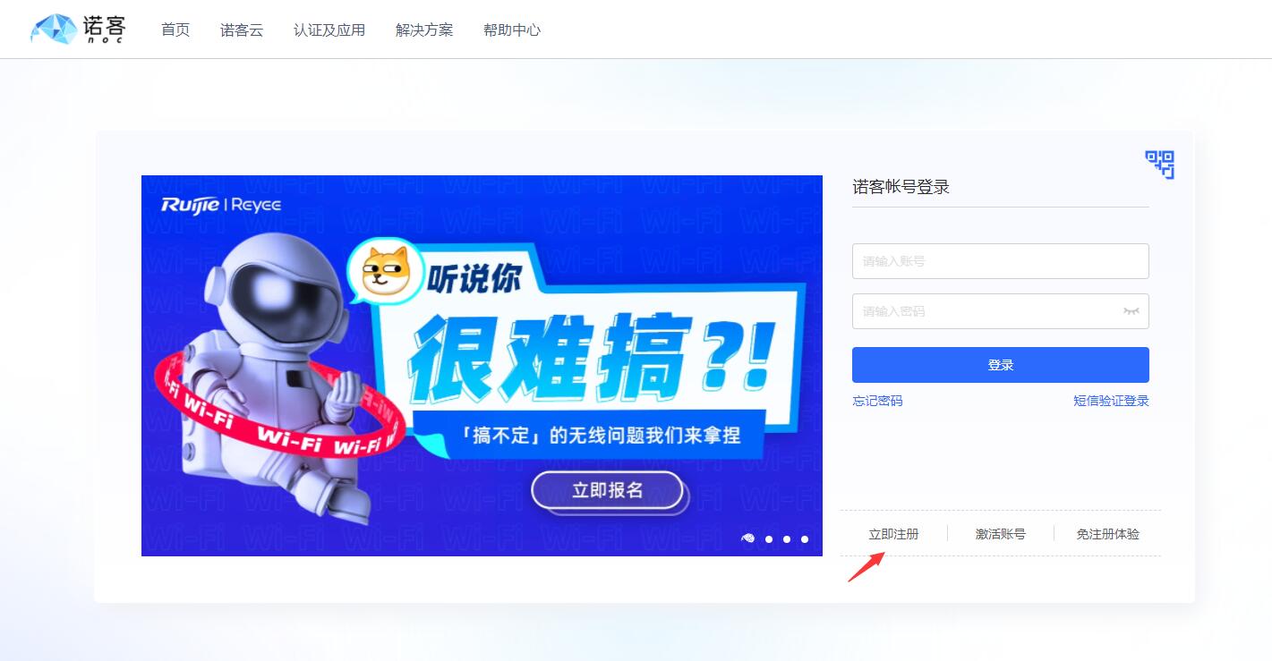 1、登錄RG-MACC諾客云平臺(tái):https://noc.ruijie.com.cn/sso/login,點(diǎn)擊【立即注冊(cè)】按鈕。