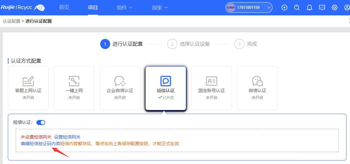 注:EG系列中,RG-EG105G-P V2、RG-EG105G-P-E、RG-EG109G-P支持短信認(rèn)證