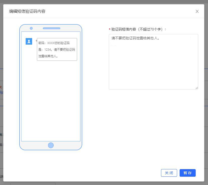 12、在彈出的窗口中,填寫(xiě)驗(yàn)證碼短信內(nèi)容“請(qǐng)不要把驗(yàn)證碼泄露給其他人。”,然后點(diǎn)擊【暫存】按鈕。