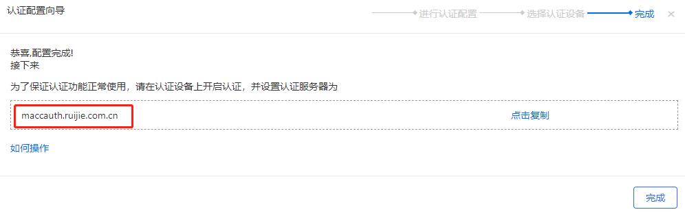15、配置成功,復(fù)制認(rèn)證服務(wù)器的地址:maccauth.ruijie.com.cn。