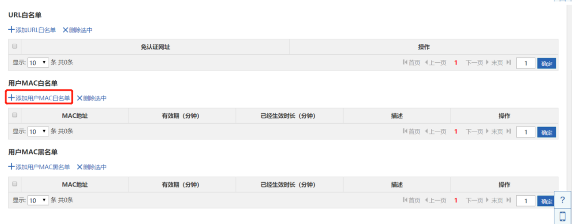 用戶MAC白名單:該MAC可直接上網(wǎng)不需要認(rèn)證。