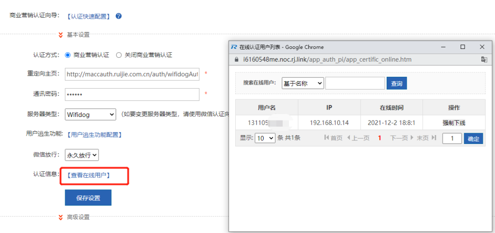 4、查看通過(guò)認(rèn)證后的在線用戶