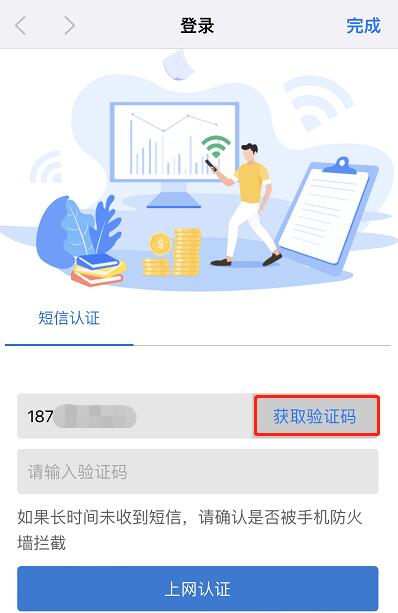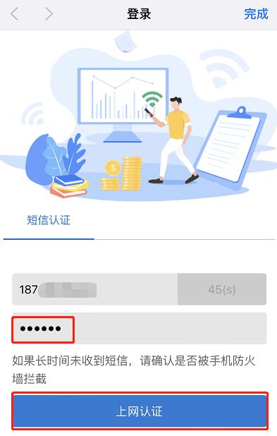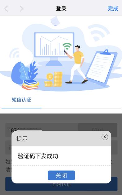 2、手機(jī)能夠接收到驗(yàn)證碼短信。在認(rèn)證頁(yè)面輸入驗(yàn)證碼,點(diǎn)擊,顯示認(rèn)證成功,設(shè)備可正常上網(wǎng)。
