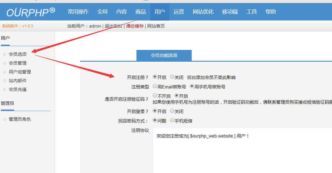 3、開(kāi)啟短信注冊(cè)或其他功能