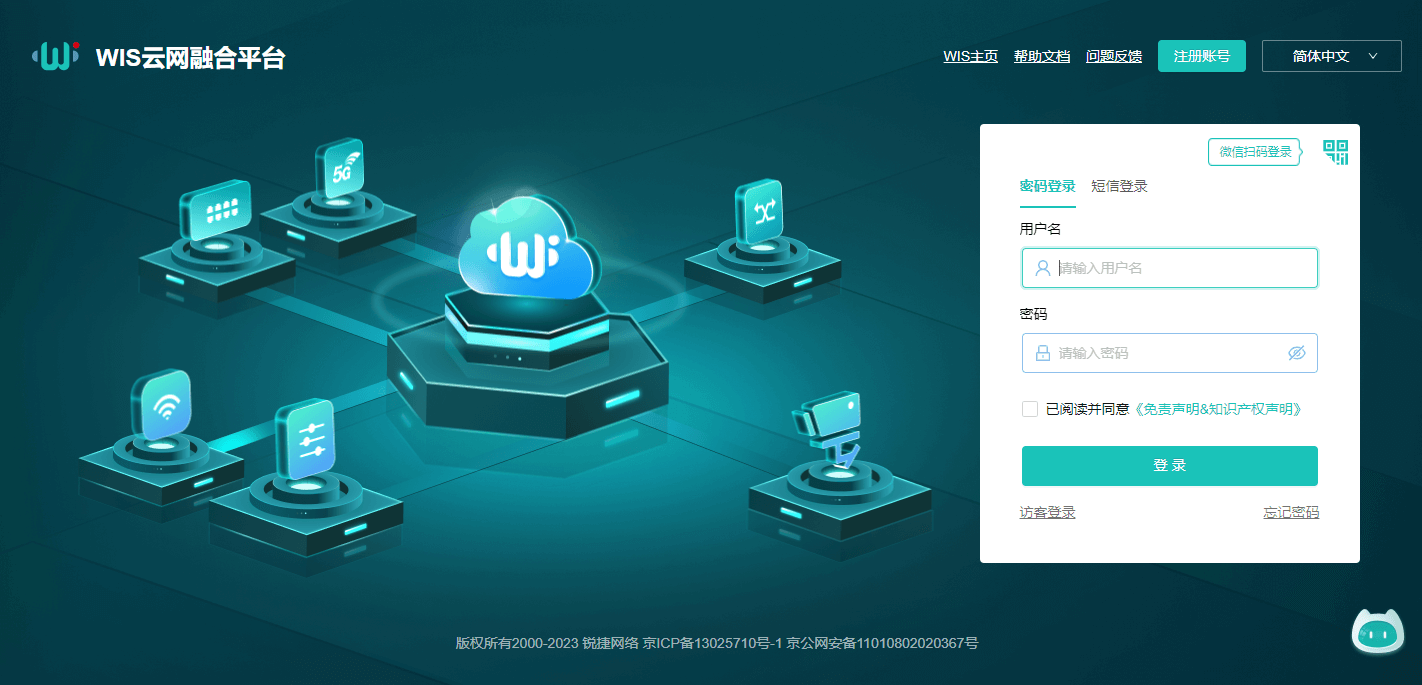 登錄WIS 5.0云管平臺(tái)(https://wis.ruijie.com.cn/cmn/user/login)。