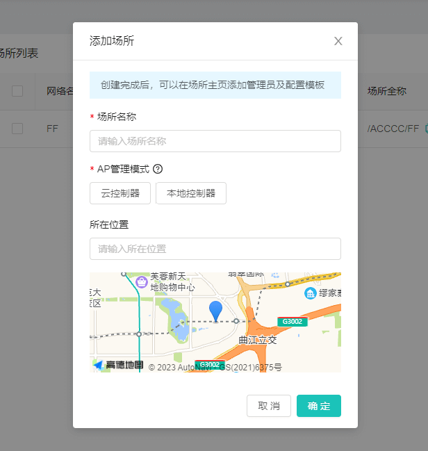 輸入場(chǎng)所相關(guān)信息,點(diǎn)擊【確定】按鈕。